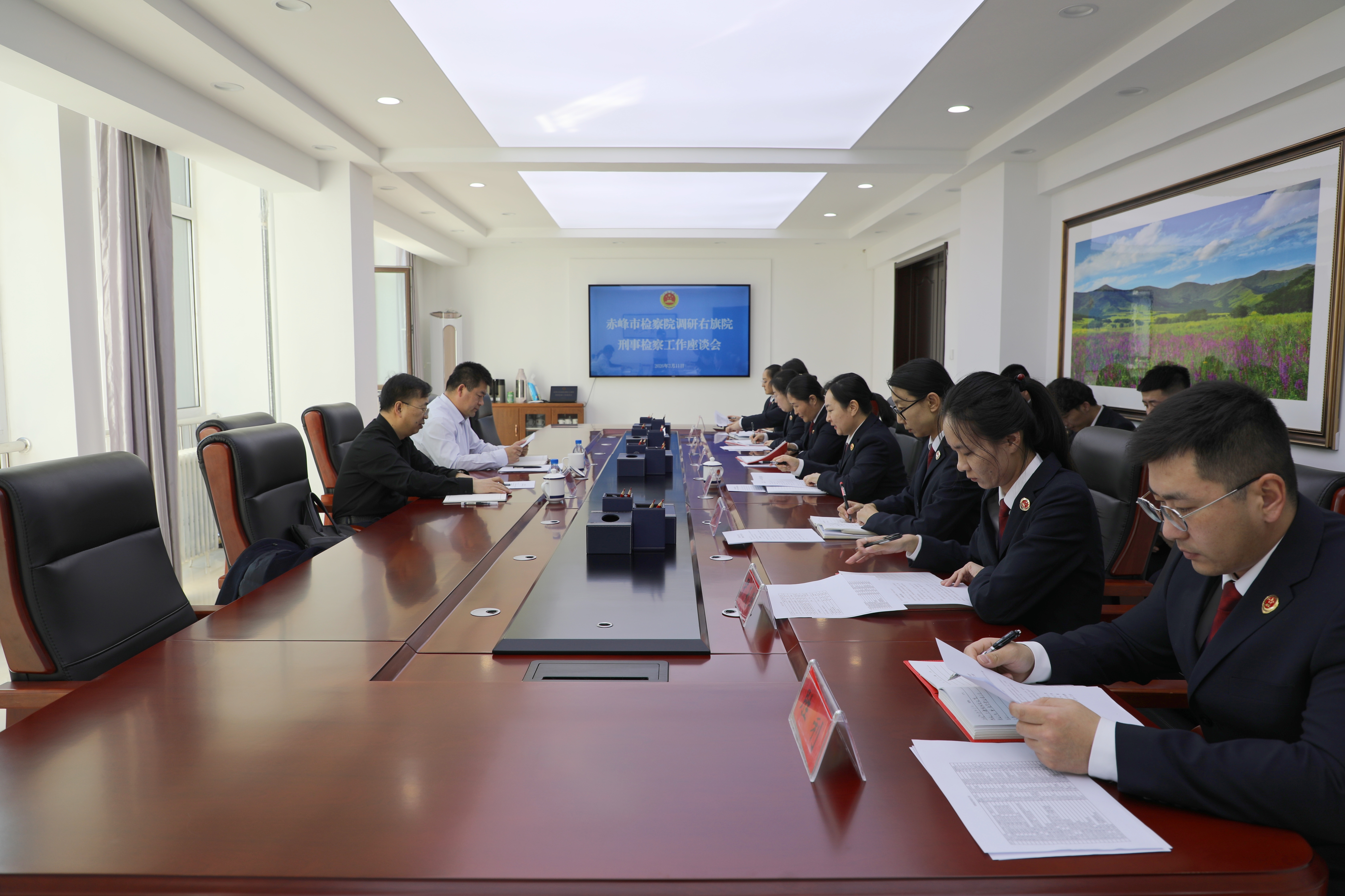 3月11日下午,赤峰市检察院副检察长王文昊与第一检察部主任王志勇一行到巴林右旗检察院,就刑事检察工作开展专题调研指导。右旗院党组副书记、副检察长芒来其其格及刑事检察部门全体检察人员参加座谈。